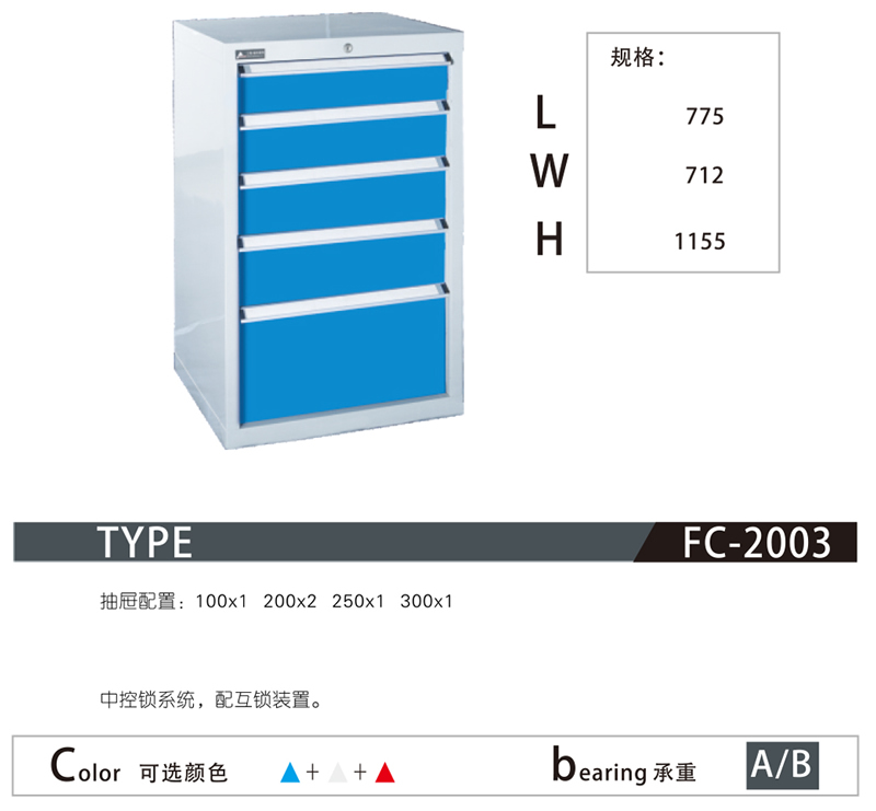 6.用戶可依據(jù)所推薦工具柜的長度、寬度、度尺寸組合成自己滿意的工具柜。還可在同一工具柜中配置單軌或雙軌抽屜,充分滿足用戶的要求